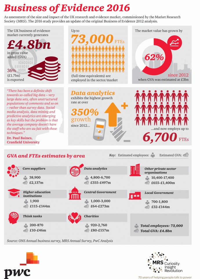 The report, The Business of Evidence 2016, concluded that the market has grown by almost £2 billion since the last sector review in 2012, with the number of full-time employees increasing by nearly 14,000 in that time.