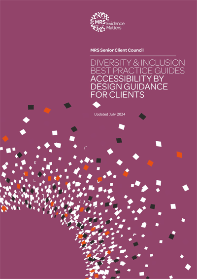 This Accessibility by Design Guidance for Clients provides a client perspective on inclusion and has been prepared by members of the MRS Senior Client Council and client colleagues.